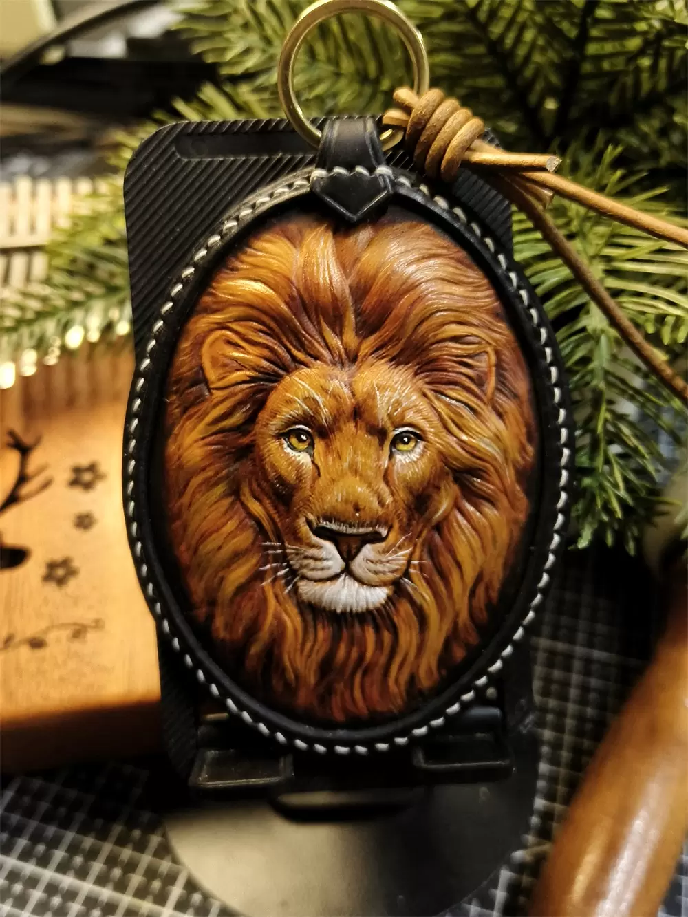 / 10cm diameter elliptical long axis 10cm leather carved pet tag